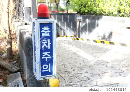 地下駐車場の出口にある『出庫注意』の表示板(韓国)