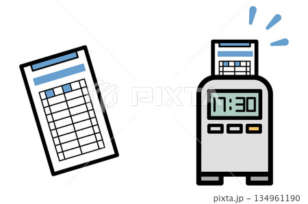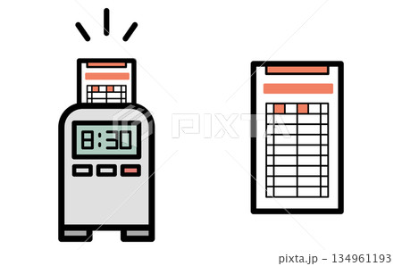 シンプルなタイムカードとタイムレコーダーのアイコンイラスト フラットデザインのかわいい勤怠管理素材