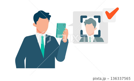スマートフォンの顔認証で本人確認を行うビジネスマンのイラスト