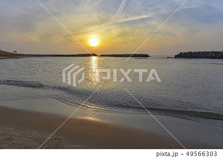 夕日 朝日 水平線 新潟県 出雲崎魚港 海 日本海