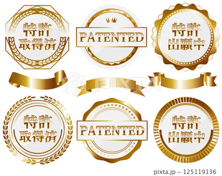高級感のある特許取得のエンブレム6種セット ホワイト&ゴールド