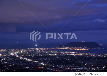 夜明けの北海道函館市裏夜景の冬景色を撮影