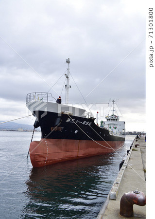 春の北海道函館市函館港で停泊中の海洋気象観測船・啓風丸の風景を撮影