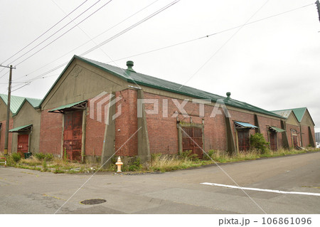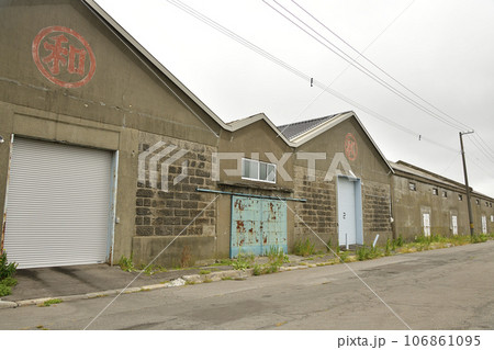 初秋の北海道函館市函館港西ふ頭の倉庫群の風景を撮影