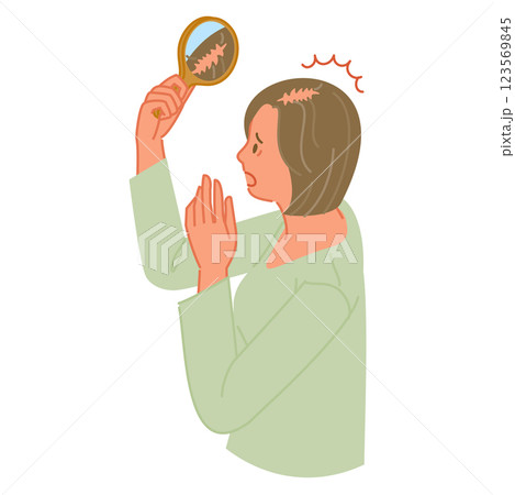 薄毛に悩むミドル女性イラスト