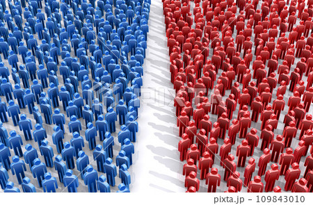 人々の分裂・分断、人型アイコンの集団、世論調査の動向予想や結果