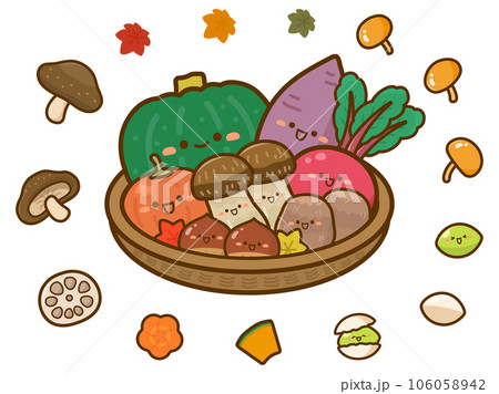秋の野菜の盛り合わせ、かわいい顔のある野菜たち