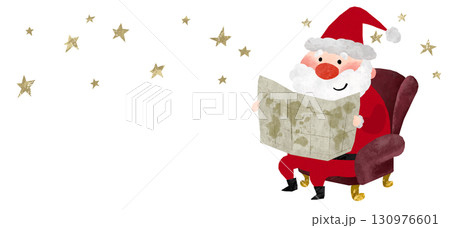 地図を見て微笑んでいるサンタクロースと星の装飾 クリスマス素材