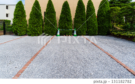 壁際に植栽がある駐車場の風景