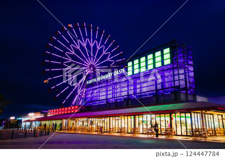 ライトアップされた刈谷ハイウェイオアシス 伊勢湾岸自動車道