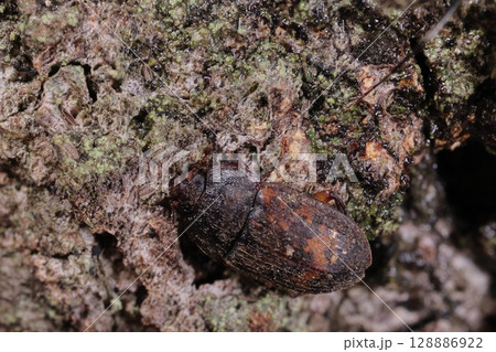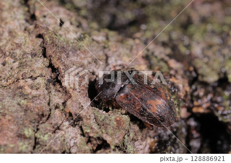 生き物 昆虫 アカマダラケシキスイ、体長六~八ミリ。黒褐色に赤いまだら、上翅には列状に毛があります
