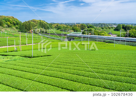 《静岡県》茶畑を駆け抜ける新幹線・新茶の収穫シーズン