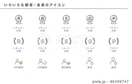 いろいろな顧客・会員のシンプルアイコンセット、ベクター素材