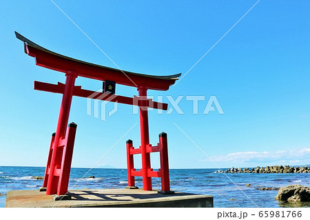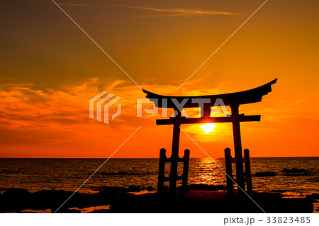 日本海に佇む北海道初山別村の金比羅神社の鳥居