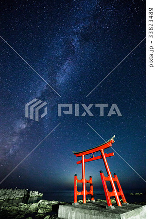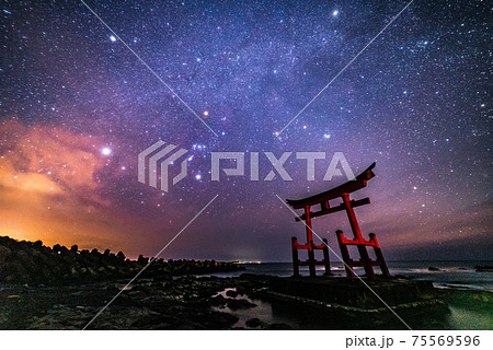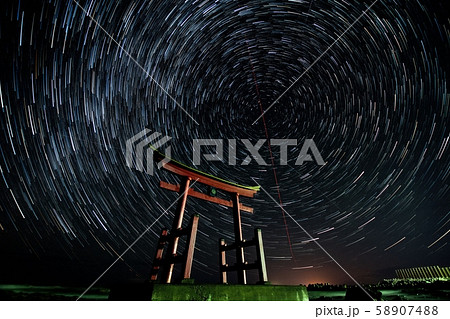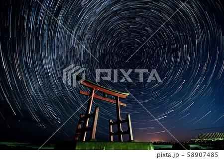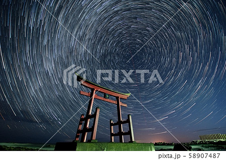 北海道 初山別 金比羅神社 鳥居 夕日 星空
