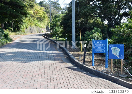 熱海市 初島のアジアンガーデンに隣接する周遊路と観光案内板