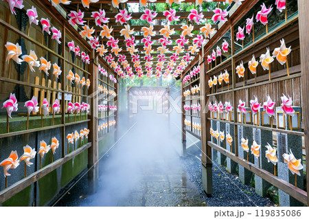 色付き始めた楓と犬矢来の初秋のイメージ素材