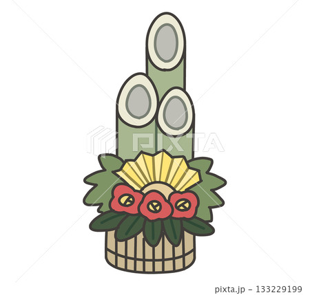 新年を祝うシンプルでフラットな白バックの門松