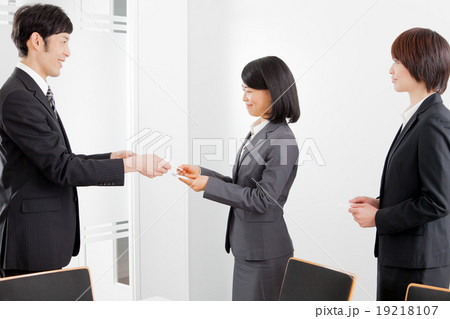ビジネスシーン 名刺交換 挨拶する女性ビジネスウーマン