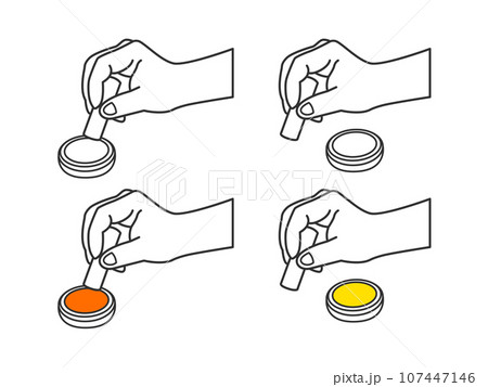 はんこを持つ手のポーズ イラストイメージ 朱肉あり