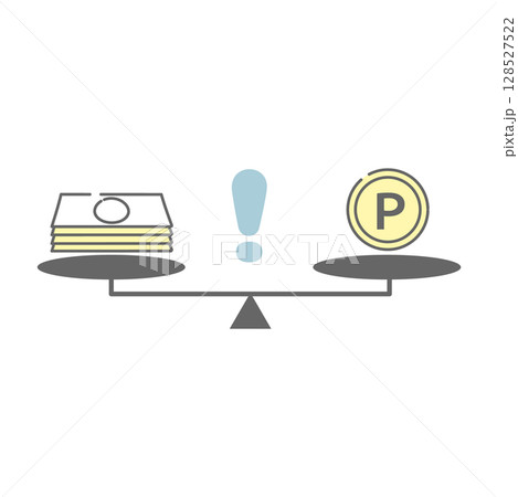 お金とポイントの価値差に注意を促す天秤のイラスト