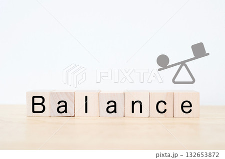 バランスを示す木製ブロックとシーソーのイラスト。