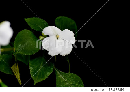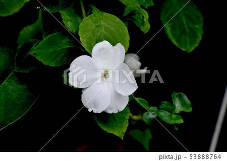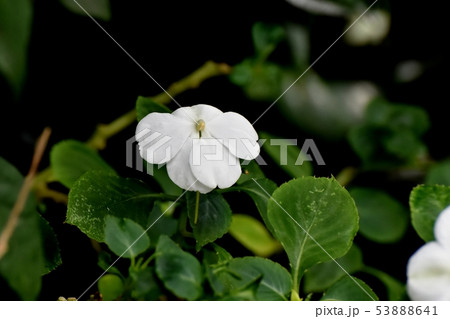 三鷹中原に咲く白いアフリカホウセンカ(インパチェンス)