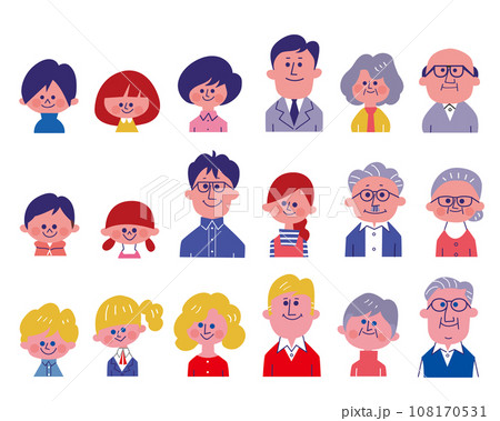 人物イラスト_笑顔の人_色々な年代の人物イラストセット