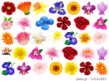 Flowers set. Spring floral stems. Rose, garden Rosa, Alstroemeria or Peruvian Lily, Iris,