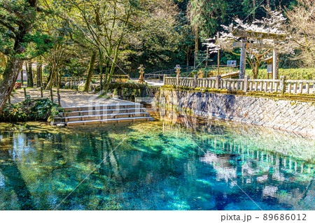 名水百選別府弁天池エメラルドグリーンの湧水 山口県美祢市
