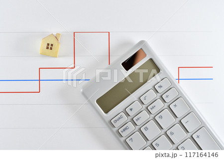 家と電卓とグラフでローンの金利のイメージ