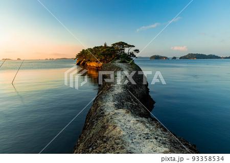 松島・馬の背の朝焼け 光が目覚める静かな海