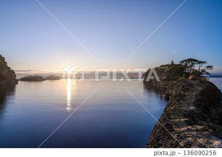 松島・馬の背の朝焼け 光が目覚める静かな海