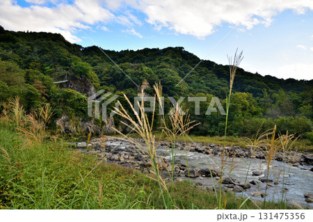 名胡桃城址からの眺め 利根川 集落 群馬県みなかみ町