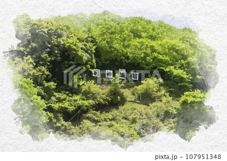 水彩画風 平福 利神城跡 兵庫県佐用郡佐用町
