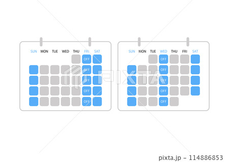 週休三日制度が反映されたカレンダーとパソコンを使って働くビジネスマンのイラスト