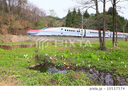 刺巻湿原を通過する秋田新幹線こまち