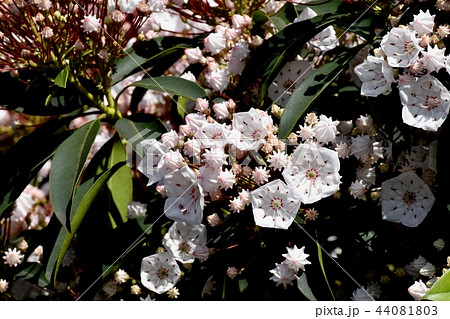 三鷹中原に咲く白いカルミア(アメリカシャクナゲ)