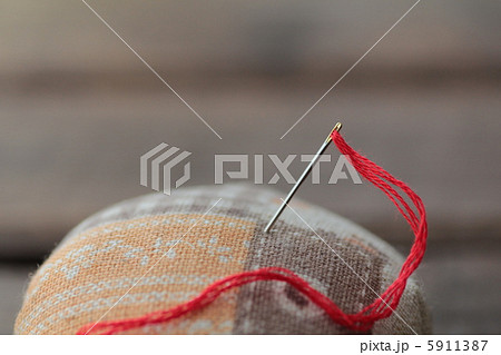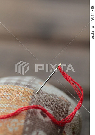 ピンクッションに刺してる糸を通した刺繍針 裁縫イメージ
