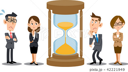 砂時計の周りで考えるビジネスパーソン
