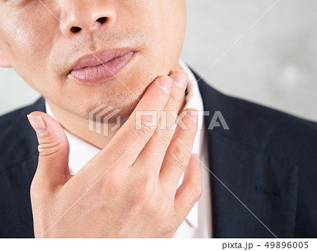 アゴヒゲの剃り跡を気にする男性ビジネスマン