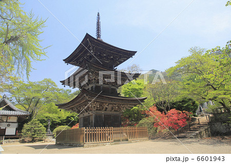 長野県上田市の初夏 新緑の前山寺 三重塔