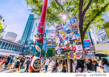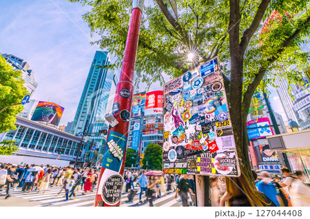 日本の東京都市景観 インバウンド続く…外国人観光客らで賑わう渋谷や木漏れ日…ステッカーなども増加