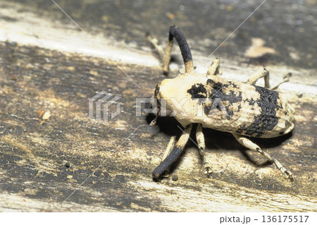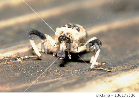 生き物 昆虫 アシナガオニゾウムシ、先太でガッシリの口吻。頑丈そうな大あごが見えます