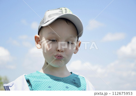 Cute cartoon little scary boy. Little schoolboy character show facial expression. Vector illustration