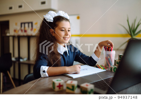 Homeschooling during quarantine. Online remote learning. Covid-2019.