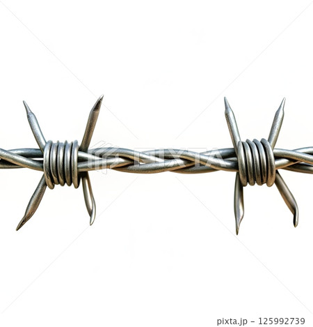A close-up shot of sharp, twisted barbed wire, highlighting its dangerous, rugged texture and metallic shine, representing confinement, security, and danger