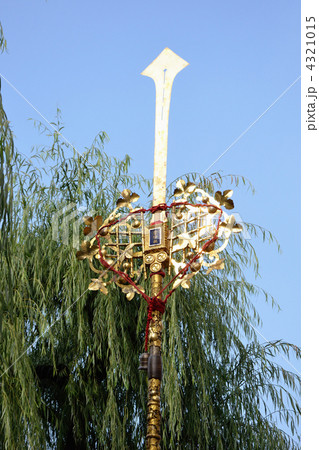 嵯峨祭 還幸祭の剣鉾、神輿の巡行路を鈴の音で祓い清める長さ10mの伝統的な祭具。京都、嵐山