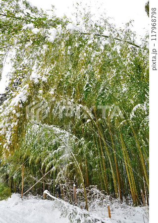 竹林と落雪