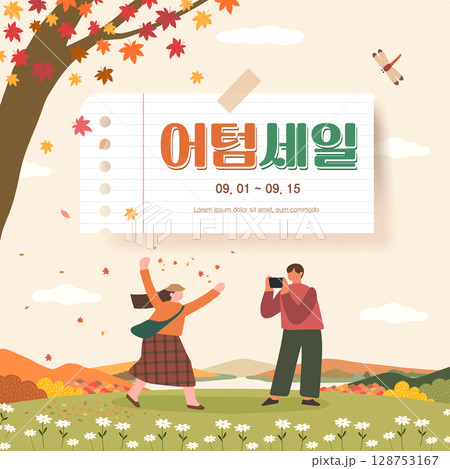 autumn sentimental shopping illustration. Text Translation "fall sale"